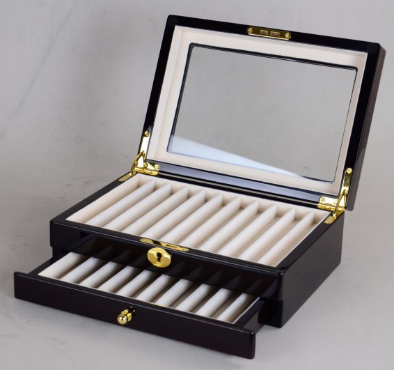 Wooden Pen box for 21 pens in Ebony exterior and Ivory interior.