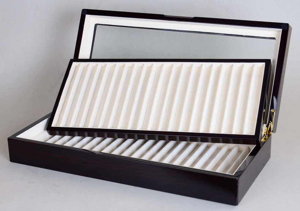 Wooden Pen box for 40 pens in Ebony exterior and Ivory interior.