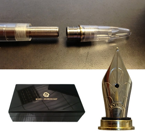 Packaging: Black Lacquer piano box, embossed with gold color WAHL-EVERSHARP outside and inside. Pen enclosed in sealed protective crystal sleeve